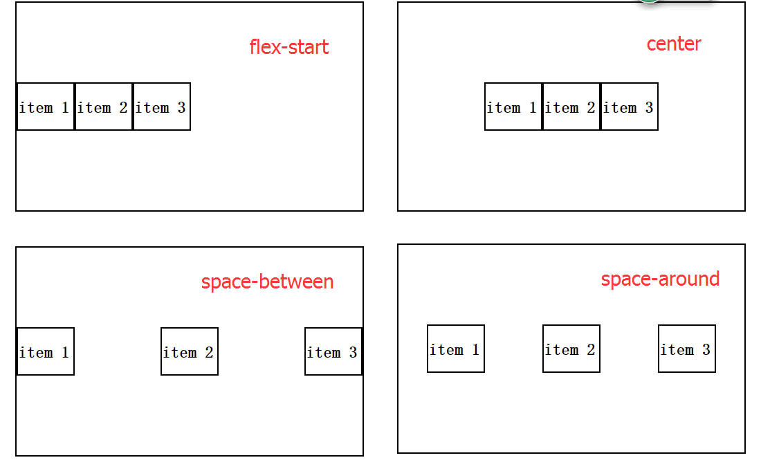 决定item在主轴上的对齐方式,可能的值有flex-start(默认),flex-end,center,space-between,space-around。当主轴沿水平方向时,具体含义为