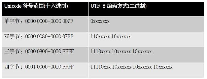 规则1:对于单字节字符,字节的第一位为0,后7位为这个符号的Unicode码,所以对于拉丁字母,UTF-8与ASCII码是一致的。