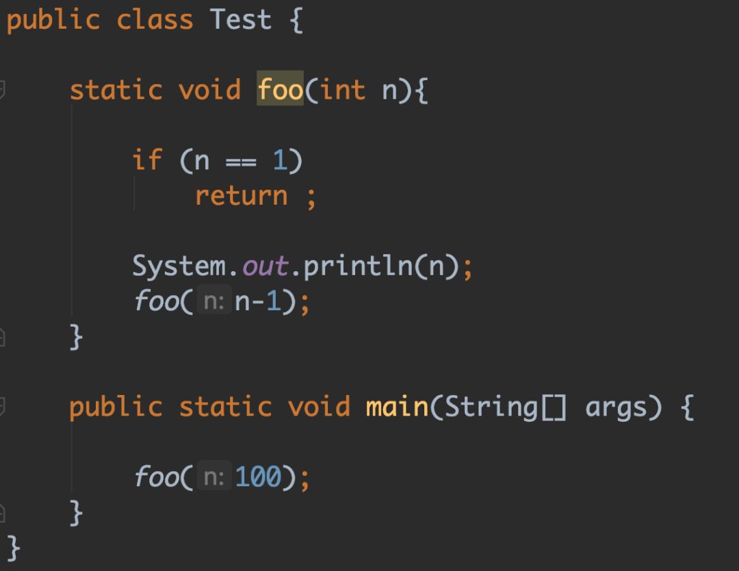 foo(n-1); // n递减1即n-1