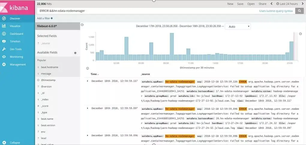 ELK-Hadoop:主要用于全局日志检索,以及错误日志关键字监控。