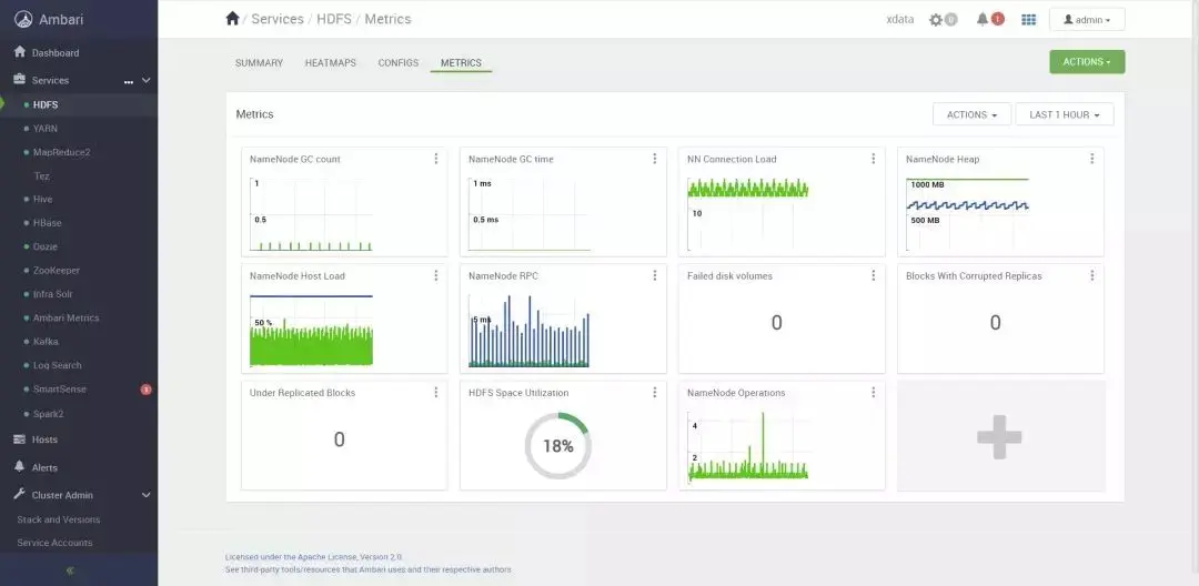 图2 Ambari提供的HDFS监控界面
