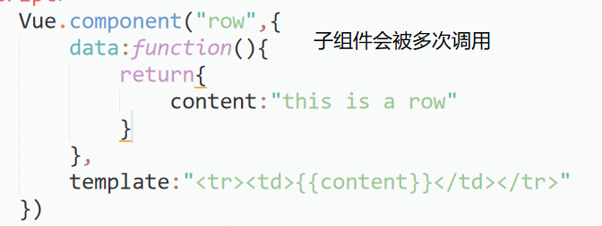 注: 子组件中定义data时,必须以函数的形式定义(子组件需要一个独立的数据存储)
