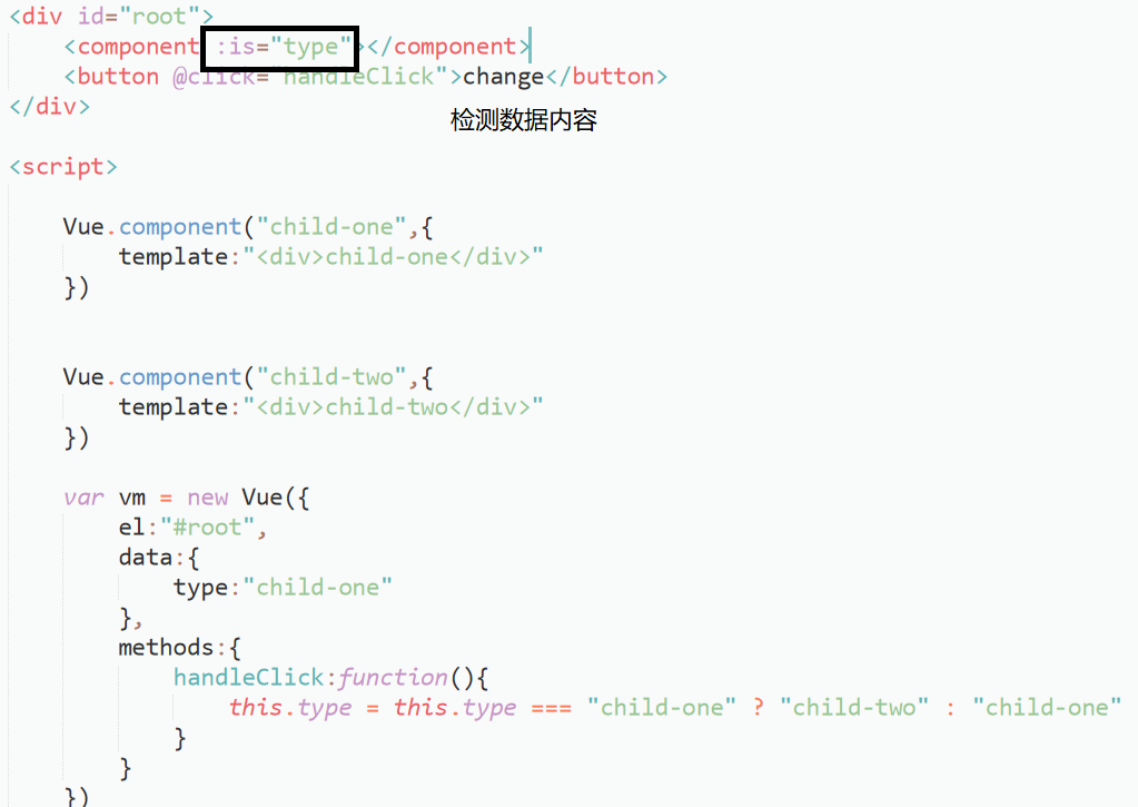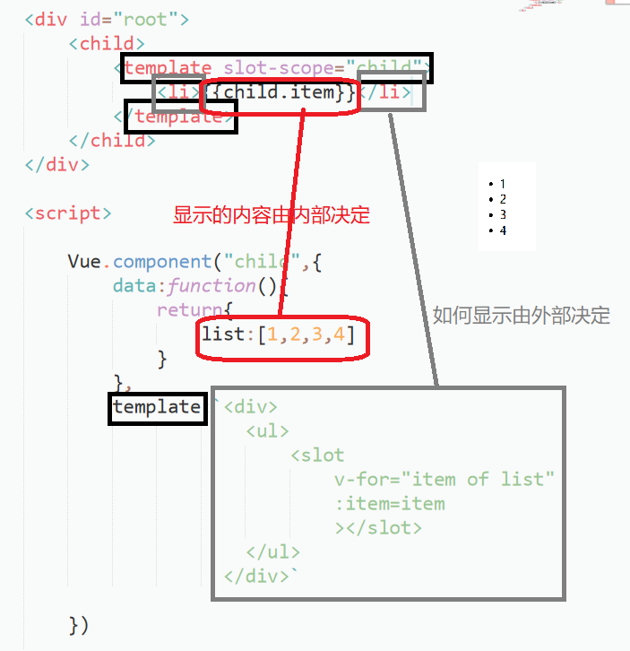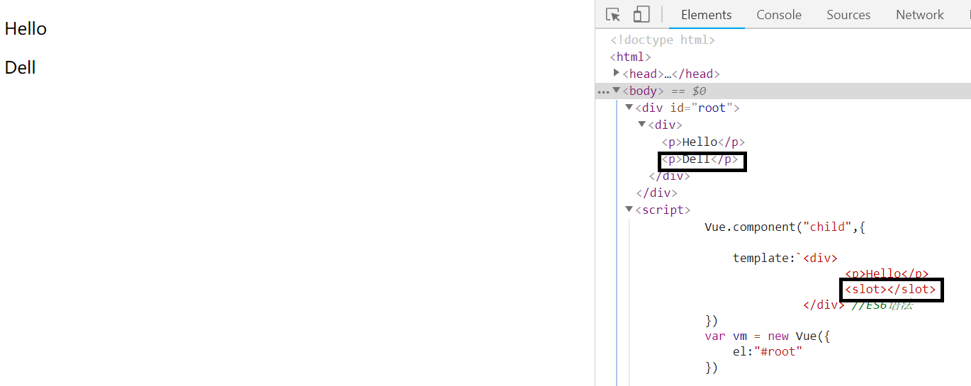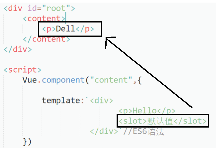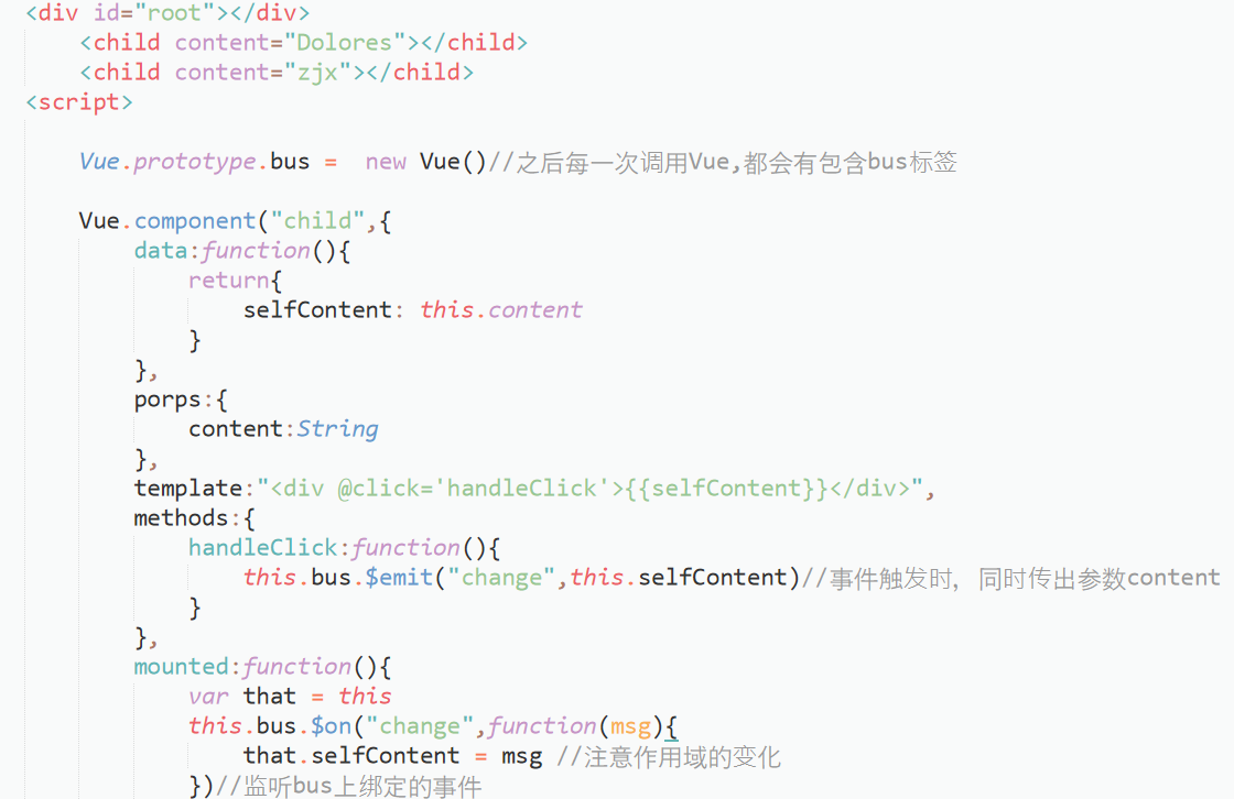 补: 父子组件通过prop产生关联,子组件直接通过插值表达式,添加数据。不会显示在DOM标签中