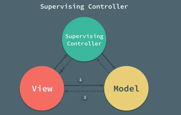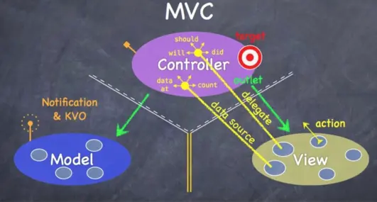 但是实际上在iOS里面MVC的实现方式很难做到如上所述的那样,因为由于Apple的规范,一个界面的呈现都需要构建一个viewcontroller,而每个viewcontroller都带有一个根view,这就导致C和V紧密耦合在一起构成了iOS里面的C层,这明显违背了MVC的初衷。
