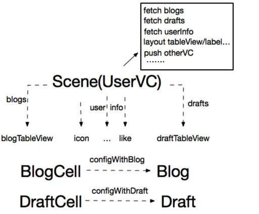另外我想说一句,apple搞出viewcontroller(VC)这么个玩意初衷可能是好的,写起来方便,提高开发效率嘛。确实应付简单页面没啥问题,但是有一个很大的弊端就是容易把新手代入歧途,认为真正的MVC就是这么干的,导致很多新手都把本来view层的代码都堆到了VC,比如在VC里面构建view、view的显示逻辑,甚至在VC里面发起网络请求。