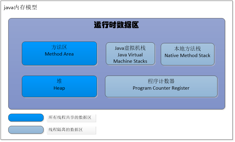 - 方法区:方法区存储虚拟机加载的类信息,常量,静态变量,即时编译器编译后的代码等数据;是jvm规范中的一部分,并不是实际的实现,在实际实现上并不相同(HotSpot在1.7版本以前和1.7版本,1.7后都有变化)。当方法区无法满足内存分配需求时,将抛出OutOfMemoryError异常。