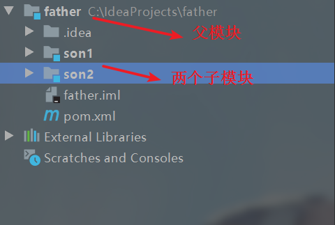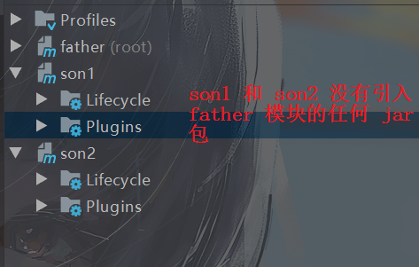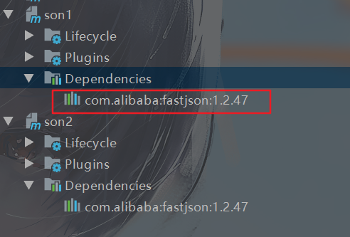 可以发现,现在 son1 和 son2 子模块引入来自 father 的 jar 包都成功了