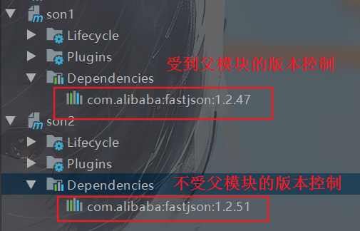 即便 father 模块 fastjson 的版本是 1.2.47,son2 模块因为显示的指定优先级更高