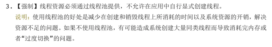 在《阿里巴巴Java开发手册中》对线程使用有如下要求: