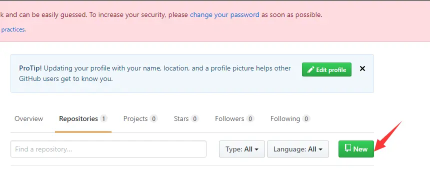 首先,登陆GitHub,然后,如下图,创建一个新的仓库: