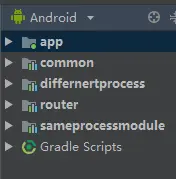 主要是app,fifferentprocess,sameprocessmodule这三个模块的依赖,通过自定义router实现解耦,common模块就是依赖模块常用的一些静态变量统一存放,便于管理。
