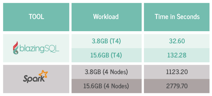 分布式GPU SQL引擎BlazingSQL最新版本应用程序与Apache Spark测试比较,在执行相同工作负载且维持相同成本的条件下,BlazingSQL的执行效能是Apache Spark的20倍。在去年10月才对外发布的BlazingSQL,是采用RAPIDS数据科学框架的GPU加速SQL引擎,RAPIDS为一个全GPU端到端资料科学工作管线的开源函式库集,BlazingSQL扩展了RAPIDS,并让用户以Apache Arrow在GPU内存中执行SQL查询。在一月的时候,BlazingSQL先进行了一次效能实验,他们在网络大厂云端平台上建立了Apache Spark以及BlazingSQL两个丛集,为维持相同成本配置,Apache Spark丛集使用8个8 CPU的节点,在BlazingSQL丛集使用一个搭载Tesla V1000 GPU与10个CPU的节点,官方提到,这两种硬件配置每月的支出约都在1500美元左右。