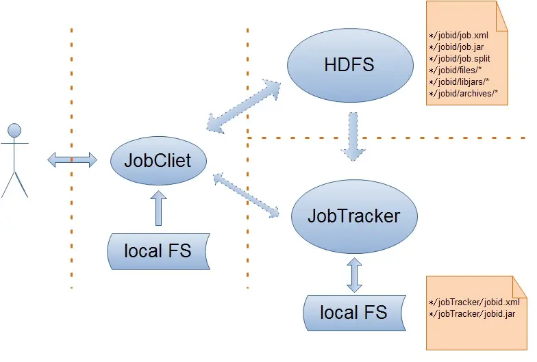 这里可能有人会混淆JobTracker、TaskTracker和Hadoop学习(一)——hdfs架构中所讲的的DataNode、NameNode。其实JobTracker对应于NameNode,TaskTracker对应于DataNode。DataNode和NameNode是针对数据存放来而言的,JobTracker和TaskTracker是对于MapReduce执行而言的。