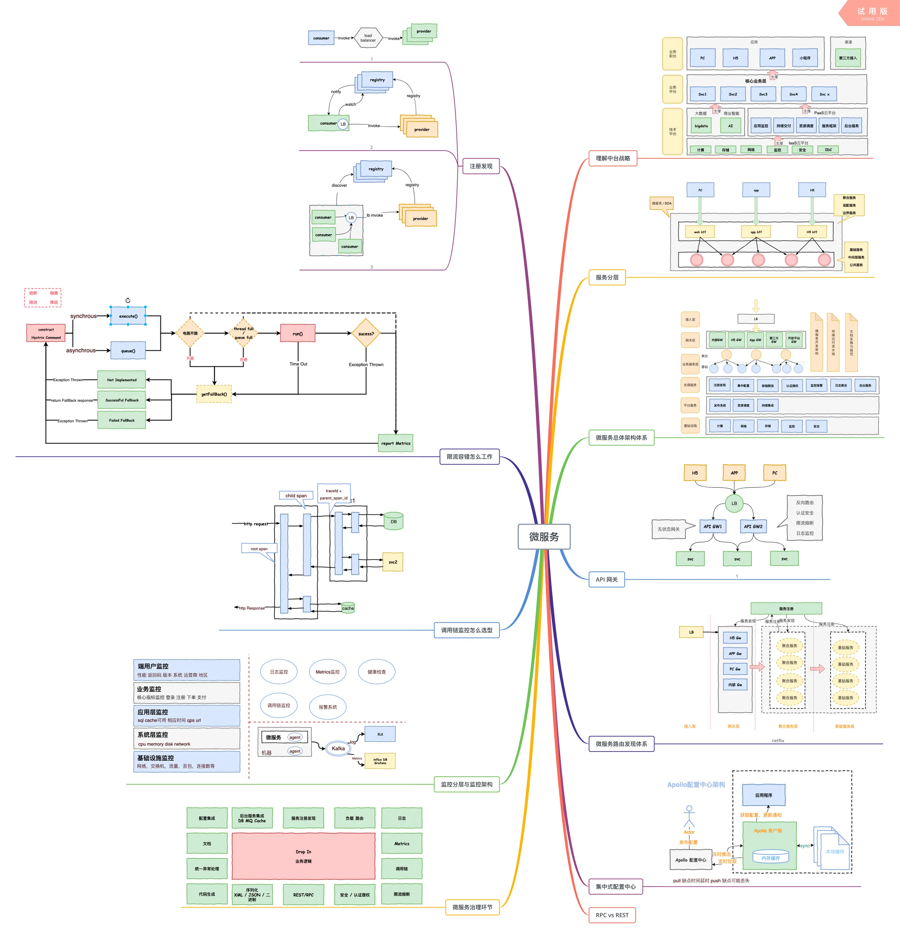 一张小小的微服务实施架构图其实引出了很多很多东西,这其实代表着我们架构微服务大概五年踩过的一个又一个坑。