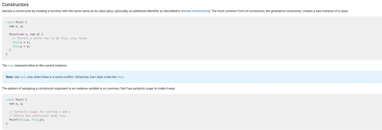 可以看到 dart 的语法糖简化了写法。具体更多构造函数写法可以查看 dart 官网。