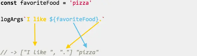 logArgs(`I like ${favoriteFood}.`)