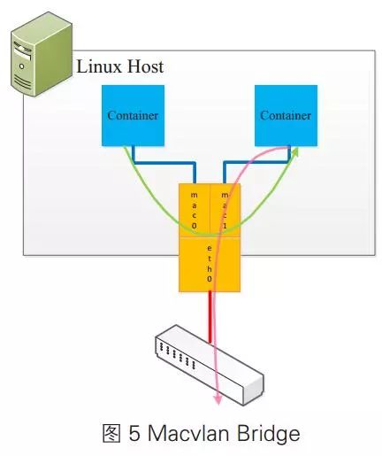 3.1 网络模式 为了让用户应用平滑地迁移至容器,比如一些传统应用或者监控应用需要直接使用Host的物理网络,也为了保障网络管理的一致性与网络性能的高效,我们选用了Macvlan网络模式。Macvlan本身是linxu kernel的模块,本质上是一种网卡虚拟化技术。其原理是在宿主机物理网卡上虚拟出多个子网卡,并分配独立的 IP 地址和 MAC 地址,把子网卡分配给容器实例来实现实例与物理网络的直通,并同时保持容器实例的隔离性。Host 收到数据包后,则根据不同的 MAC 地址把数据包从转发给不同的子接口。在网络上看起来容器直接连接到物理网络,和物理机和虚机没有区别。Macvlan共有4种模式,我们使用的是高性能的Macvlan Bridge,如下图所示: