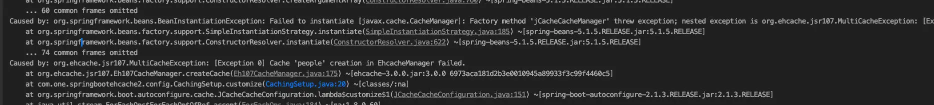// com.one.springbootehcache.domain.Person.java public class Person implements Serializable { private int id; private String firstName; private String lastName; public Person(int id, String firstName, String lastName) { this.id =id; this.firstName = firstName; this.lastName = lastName; } public int getId() { return id; } public void setId(int id) { this.id = id; } public String getFirstName() { return firstName; } public void setFirstName(String firstName) { this.firstName = firstName; } public String getLastName() { return lastName; } public void setLastName(String lastName) { this.lastName = lastName; } }- @CacheResult 必须指定 cacheName,否则 cacheName 默认视为该方法名称。