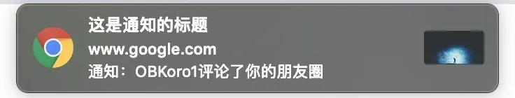 该通知是脱离浏览器的,即使用户没有停留在当前标签页,甚至最小化了浏览器,也会在主屏幕的右上角显示通知,然后在一段时间后消失。