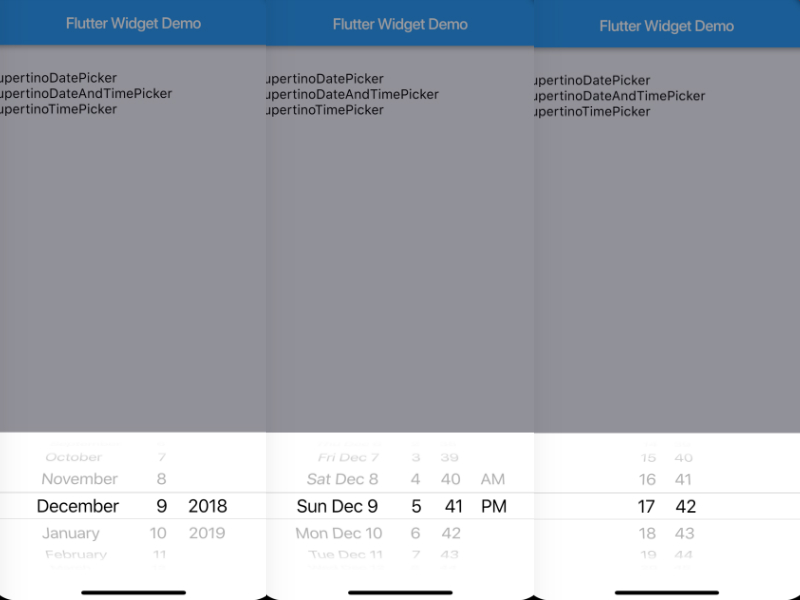 选择器对应的Widget在Flutter中也有两种风格的实现,具体用法和使用例子如下。