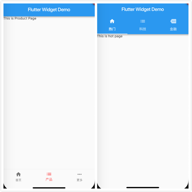 BottomNavigationBar和Tabbar显示效果如下图: