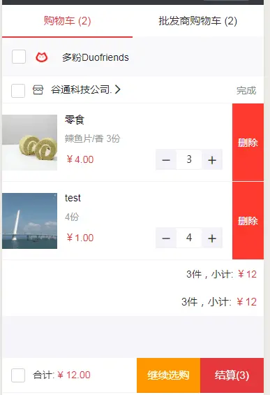 - 购物车,包含 商品全选 单选、左滑删除商品、记录勾选商品、下单 功能。