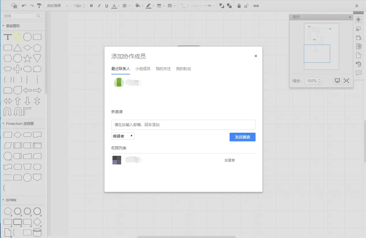 第四点深得我心,processon支持协作,对于文件有协作需求的特别方便,不用几个文件下载完了传来传去,各自修改完了还得合并,添加协作者之后可以共同编辑文件,数据实时同步。