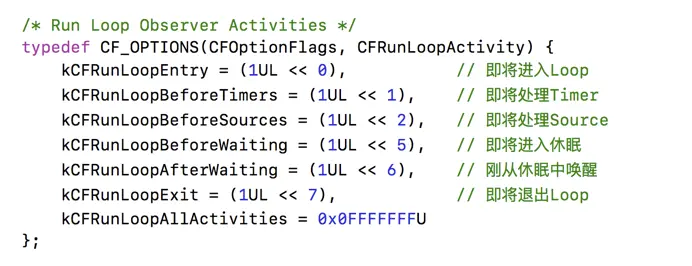 CFRunLoopObserverRef observer = CFRunLoopObserverCreate(kCFAllocatorDefault, kCFRunLoopAllActivities, YES, 0, observeRunLoopActicities, NULL);
