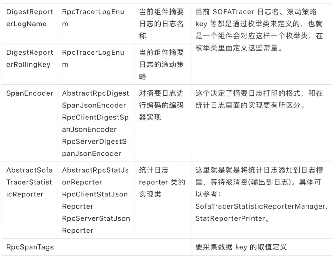 基于 SOFATracer 自身 API 埋点最大的优势在于可以通过上面的这些参数来实现不同组件日志之间的隔离,上述需要实现的这些点是实现一个组件埋点常规的扩展点,是不可缺少的。