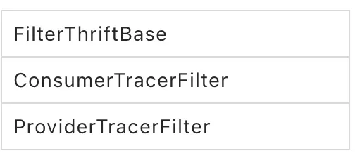 我们内部 Thrift 支持 SPI Filter 机制,因此要实现对请求的拦截过滤,示例插件埋点的实现就是基于 SPI Filter 机制完成的。其中 FilterThriftBase 抽象也是为了便于处理 consumerFilter 和 providerFilter 公共的逻辑抽象。