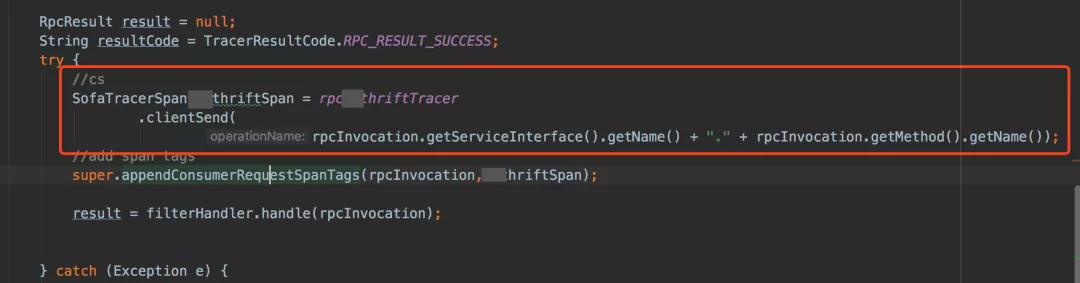 服务端接收请求 sr 阶段,产生了一个 Span 。上面appendProviderRequestSpanTags这段代码是为当前这个 Span 设置一些基本信息,包括当前应用的应用名、当前请求的 service、当前请求的请求方法以及请求大小等。