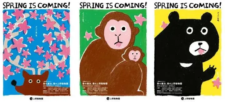 除了课堂上的熏陶,生活中的美学也是无处不在。比如日本人气最旺的上野动物园,会随着季节推出不一样的海报。