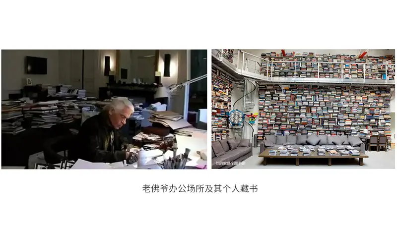 所以老佛爷位于巴黎左岸的豪宅里习惯阅读、工作到中午,然后到附近的一所房子里去吃午饭,为避免干扰,在他睡觉和阅读、画画的地方 ,不允许有别的事情存在。他甚至拥有个人图书馆,藏书量达到30万本。
