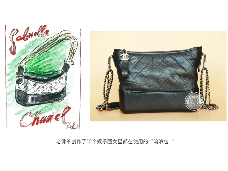 经过老佛爷的一系列复活计划,让香奈儿在20世纪末开始重新烁烁生辉,并且2000年过后频频让人惊喜,比方2017年推出后让半个娱乐圈女星都在使用的“流浪包“(Gabrielle加布里埃)手袋,这款手袋由老佛爷亲自设计,加布里埃就是可可香奈儿女士的名字,所以老佛爷是借此向Chanel女士致敬,设计灵感来自欧洲绅士们骑马时用的望远镜套,结合Chanel经典的菱格纹,经典而俏皮。