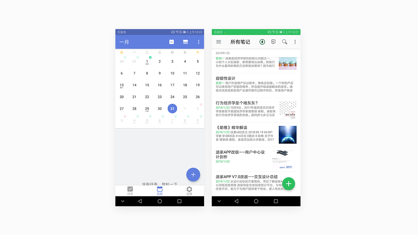 设计师应该都知道在Material Design 中除了x,y轴同时也引入z轴概念,通过抽象化纸片在物理世界中的形态,定义各种信息层级。如下图Worktile android端的添加操作我们增加了z轴的设计也就是增加了投影,我们可以清楚的看到右下角添加与底部信息之间的层级关系,添加的操作由于是有颜色的并且加入了投影这样在z轴的高度最高同时距离用户也更近,我们可以清楚的看到添加在当前页面的重要性。需要提示的一点是不要因为突出而突出,不要进行卡片嵌套设计,否则用户很难分清当前卡片与其它元素之间的关系。