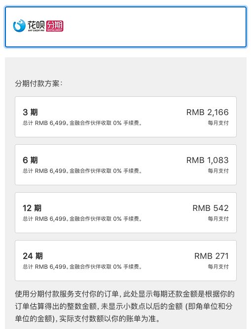 Apple Store支持花呗分期,24期无息