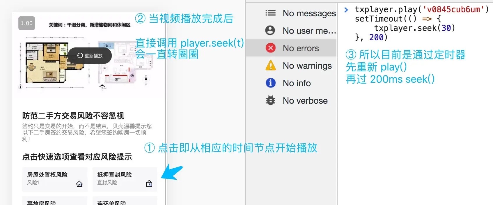 经调试又发现:我们原以为第一时间就会触发的 load 事件,并非如此。大多数情况下能立马触发,偶尔会隔好久才触发。这就导致当其还未触发时,若苹果手机用户点击了播放,会从头播放。