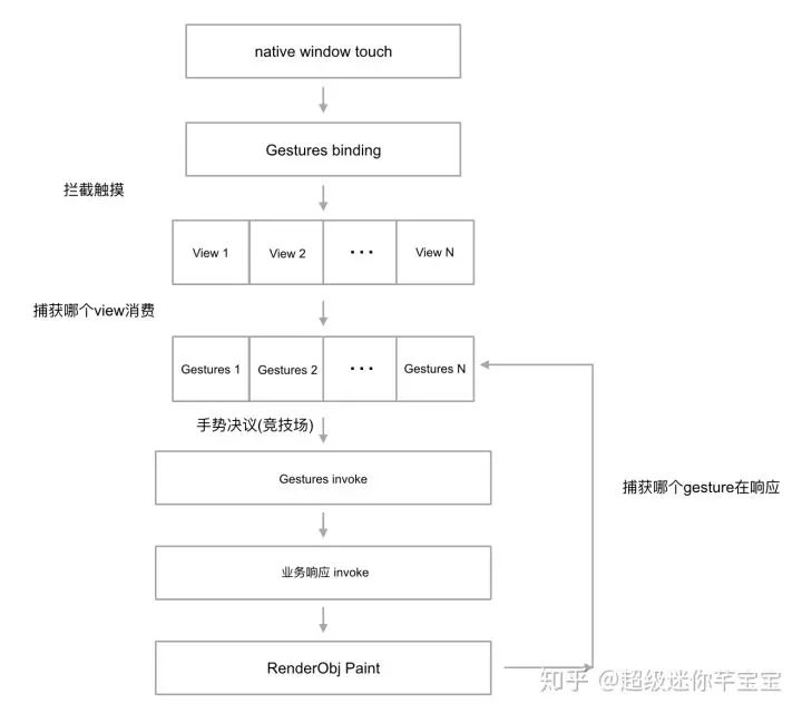 原始触摸数据是由系统传给native,native再通过flutter view channel传给flutter。