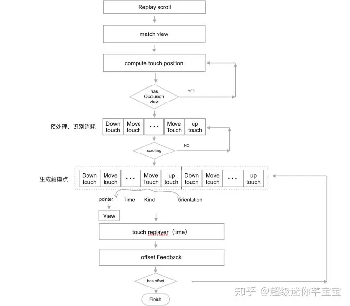 上面代码大概处理逻辑:1.计算滚动方向,每个生成的触摸数据偏移单元 2.计算滚动的开始位置 3.生成滚动原始触摸数据列表 4.循环发射原始触摸数据,并计算是否滚动到指定的位置,如果还达不到指定的位置,则继续补给