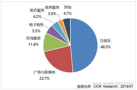 根据计世资讯(CCW Research)的研究结果表明,近几年视频云服务在行业中的落地速度不断加大。泛娱乐、广电与新媒体等新兴行业依然是视频云服务的主力,占据了大部分的市场份额,但值得注意的以教育、医疗、政府为代表的传统行业市场中视频云服务的应用也在快速增长,市场份额不断提升,这也将是未来市场中重要的机会点。当前泛娱乐、广电与新媒体、在线教育三大行业市市场份额最大的三个行业,合计份额达到82.6%,引领视频云服务整体市场的发展。