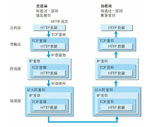 利用 TCP/IP 协议族进行网络通信时,会通过分层顺序与对方进行通信,发送端从应用层往下走,接受端则从链路层往上走。与此同时,在发送端数据往下下发的时候,会被每一层封装对应的头部,在接受端则分拆每一层的头部。