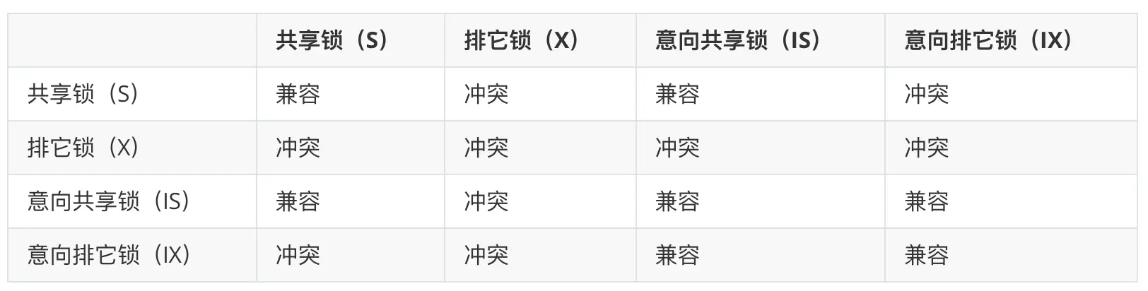 按照是否兼容来分类,表级锁和行级锁可以再细分为共享锁和排它锁。