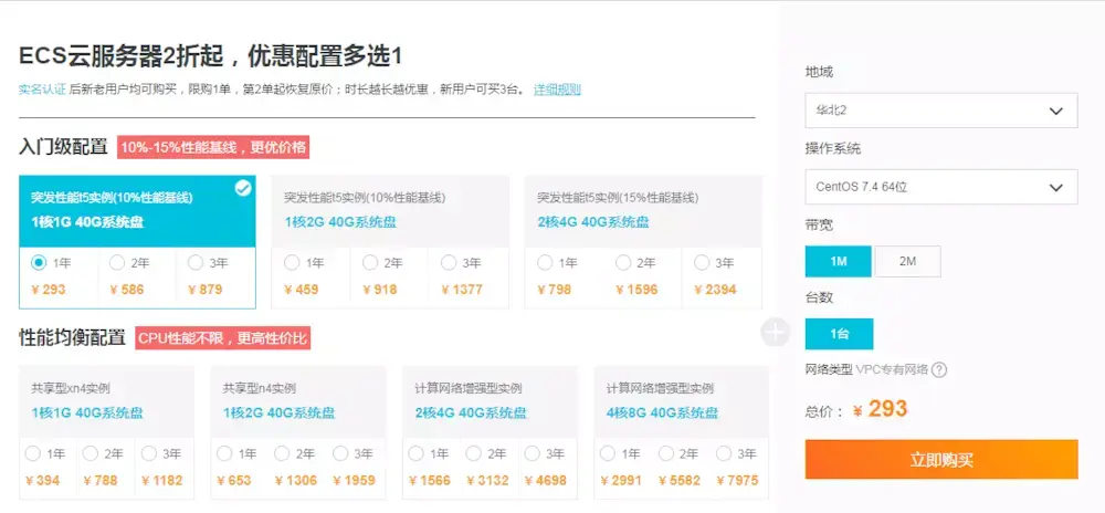 服务器配置的选择主要取决于我们的使用场景,以下场景仅供参考,注意:建议大家购买阿里云优惠套餐,自定义购买价格较为昂贵,优惠套餐会在文章下方介绍: