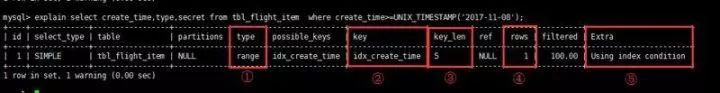 如下图所示,虽然给secret字段添加了索引,但在explain结果并没有使用: