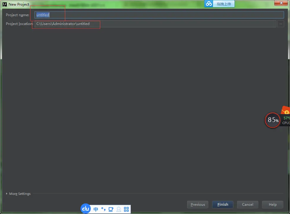 步骤3:点击next--->之后填写你的项目名,指定你的路径