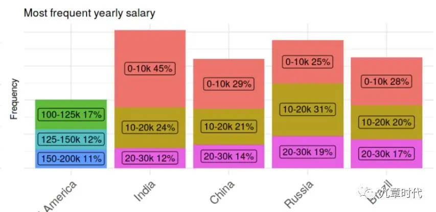 接下来,让我们揭开万众瞩目的面纱 - 中国数据界从业者工资究竟是多少。根据资料显示,在中国,“数钱人”们的年收入中位数是20k美金,也就是13.6万人民币。平均每月也有上万的可观收入呢。