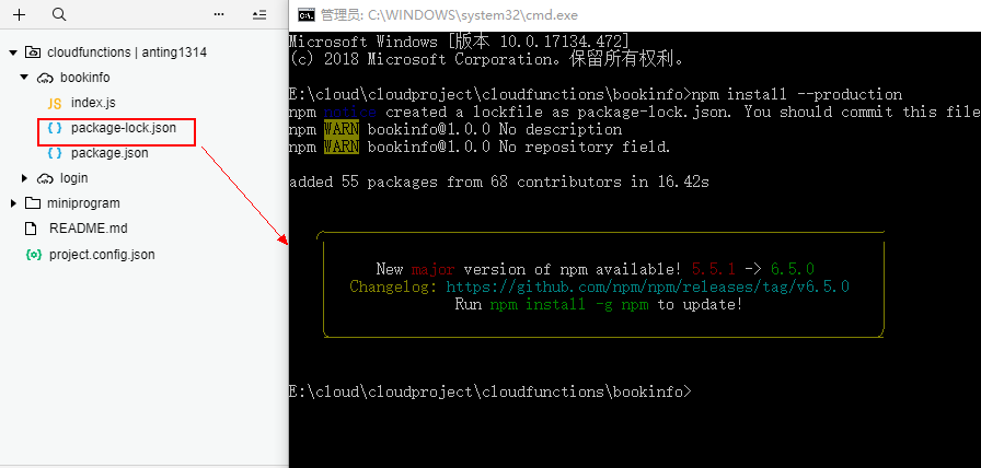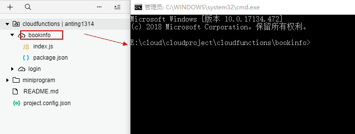 4:在cmd 打开云函数目录中,安装依赖。 输入命令:
