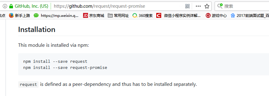 5:由于要请求网络,所以要安装请求网络的库,请求网络的库可以使用node.js中的request库,方便快捷:github.com/request/req…