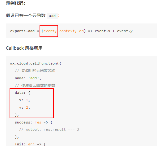 通过看文档可以学会,在云函数里,我们可以通过传递一份data来获取这里面的数据,然后再通过event来拿到对应的数据。