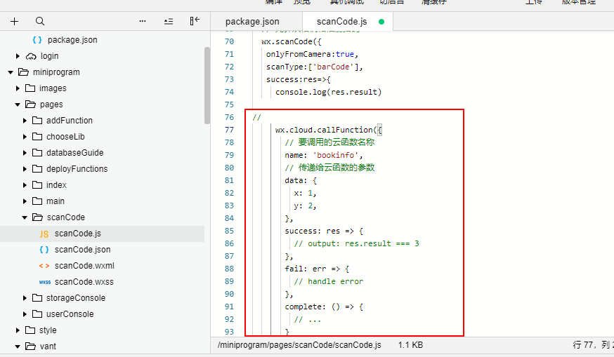 1:在云函数之中,拿到小程序端扫一扫获取到的传的编码,该如何传参?